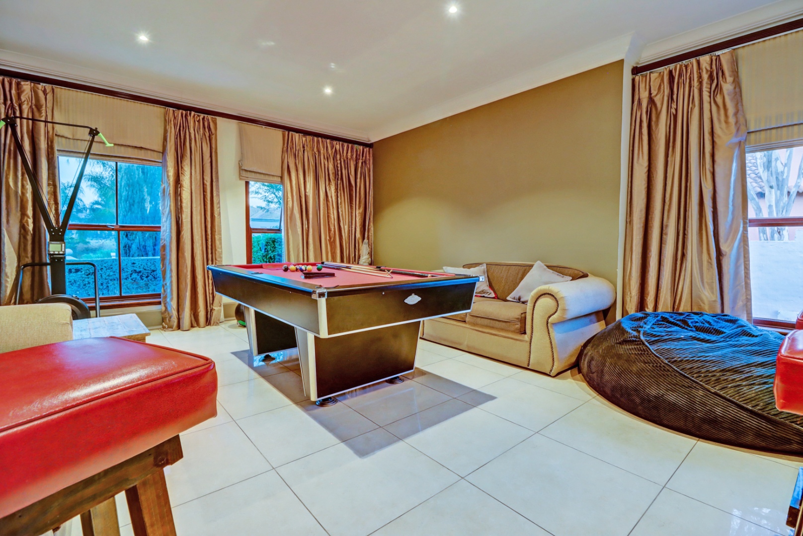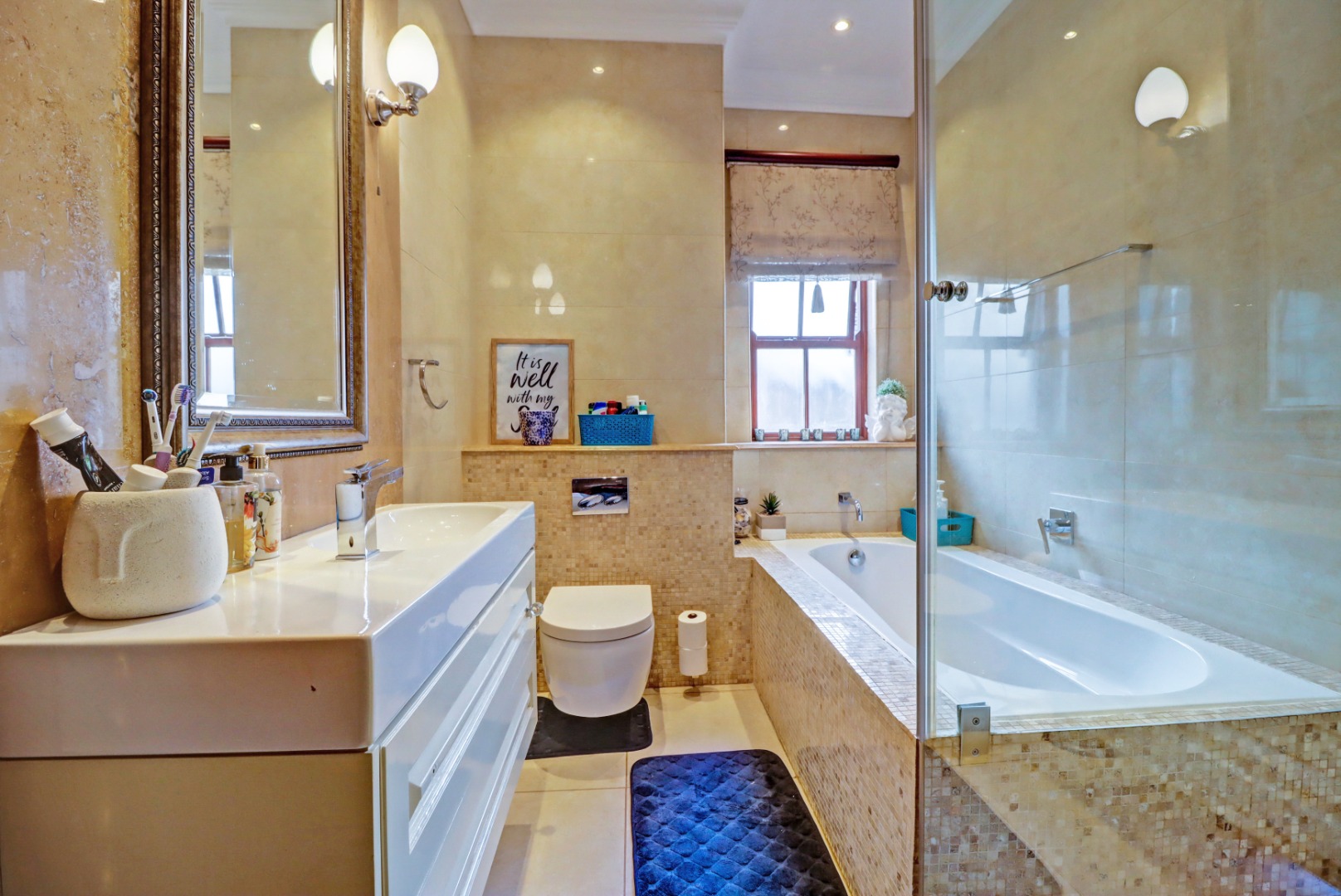 Discover sophisticated living in this expansive 4-bedroom, 3.5-bathroom residence available for rent within the prestigious Woodhill Golf Estate, Pretoria. This home boasts a classic Mediterranean-inspired architectural style, offering generous living spaces designed for comfort and entertaining. The interior features a dedicated lounge, a formal dining room, and a family TV room, providing ample space for relaxation and social gatherings. A private study offers an ideal environment for remote work or quiet contemplation. The well-appointed kitchen is ready to cater to all culinary needs, while large bi-fold doors create a seamless transition from the main living areas to the outdoor entertainment spaces, enhancing the indoor-outdoor flow.