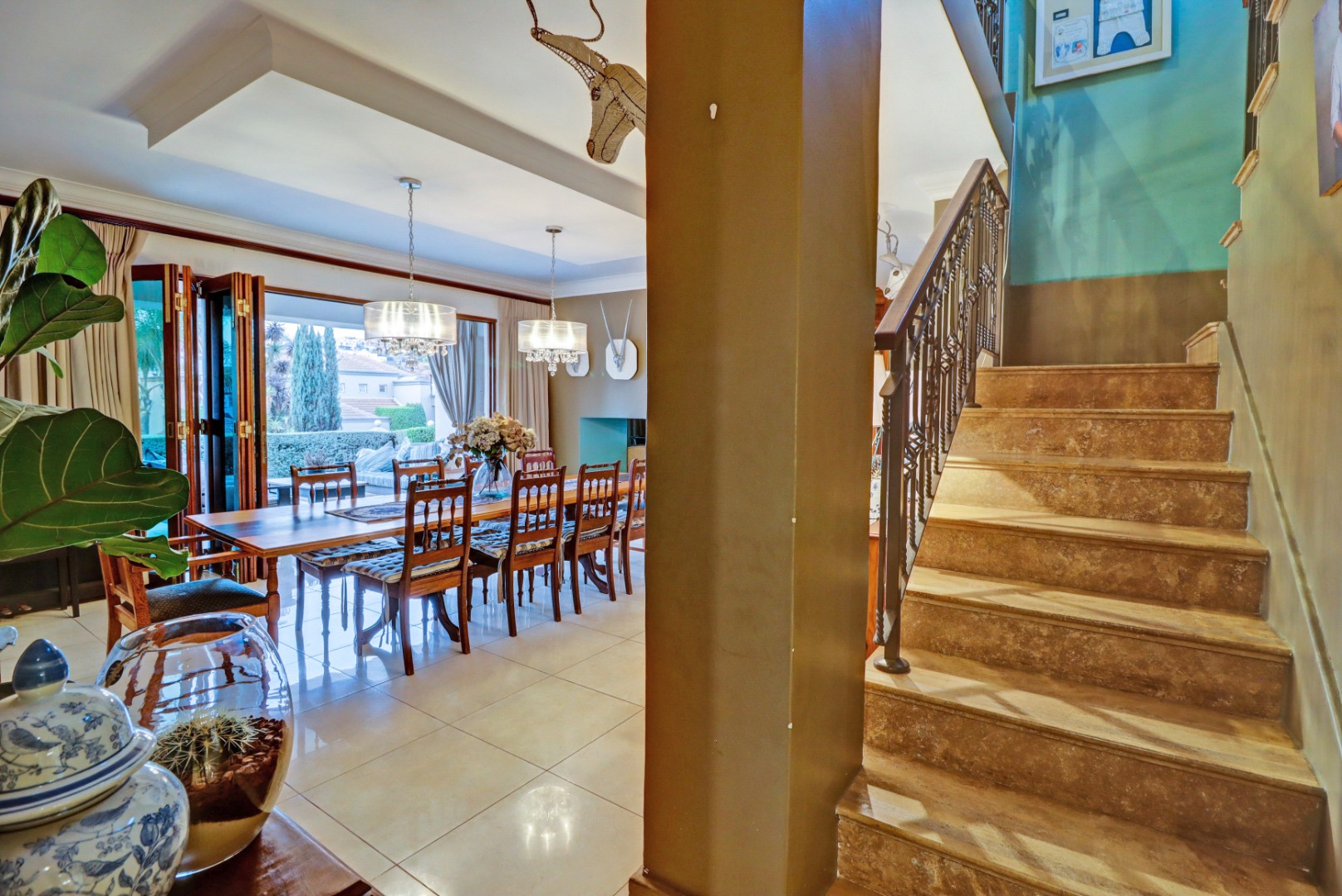Designed for a premium lifestyle, this property caters to families and professionals seeking both luxury and convenience. Enjoy the South African climate with extensive outdoor amenities, including a spacious patio, a dedicated deck area, and a refreshing swimming pool, perfect for leisure and entertaining. The established garden provides a tranquil backdrop, and with pets allowed, it’s an ideal setting for the entire family. The elegant wrought iron staircase adds a touch of grandeur, connecting the home's levels with style.