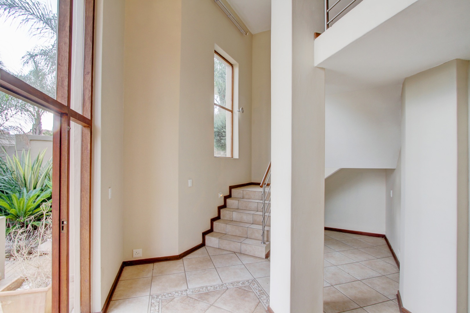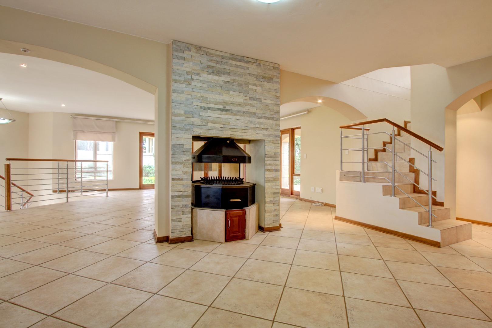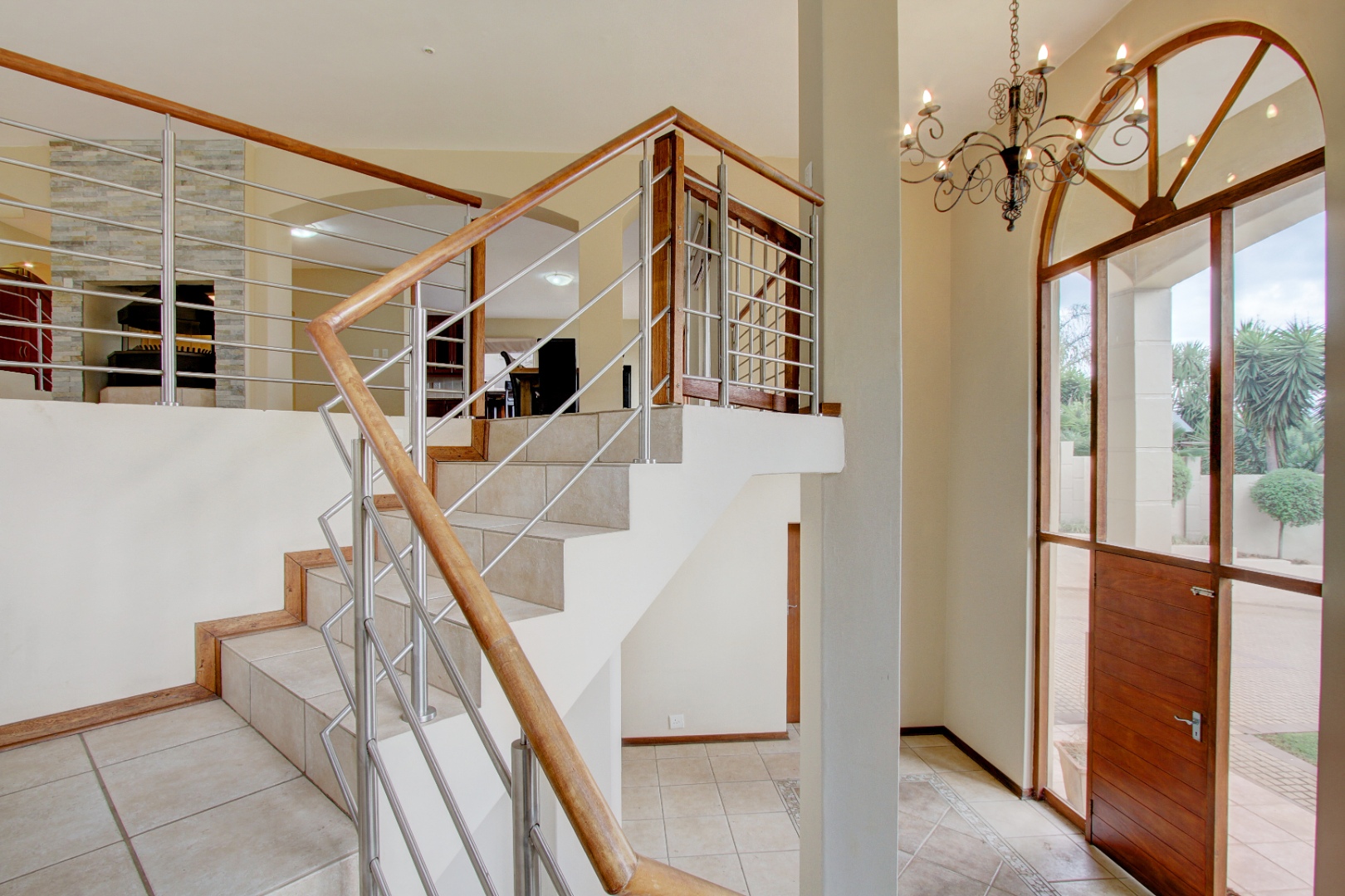 Discover this exquisite furnished 4-bedroom, 4-bathroom residence nestled within the prestigious Woodhill Golf Estate in Pretoria. This multi-story home boasts a grand arched entryway, high ceilings, and abundant natural light. The spacious layout includes two comfortable lounges, a dedicated dining room, and a well-appointed kitchen with a pantry. Modern finishes feature durable tiled flooring, neutral walls, and a contemporary staircase with sleek metal and wood railings, creating an inviting and stylish atmosphere.