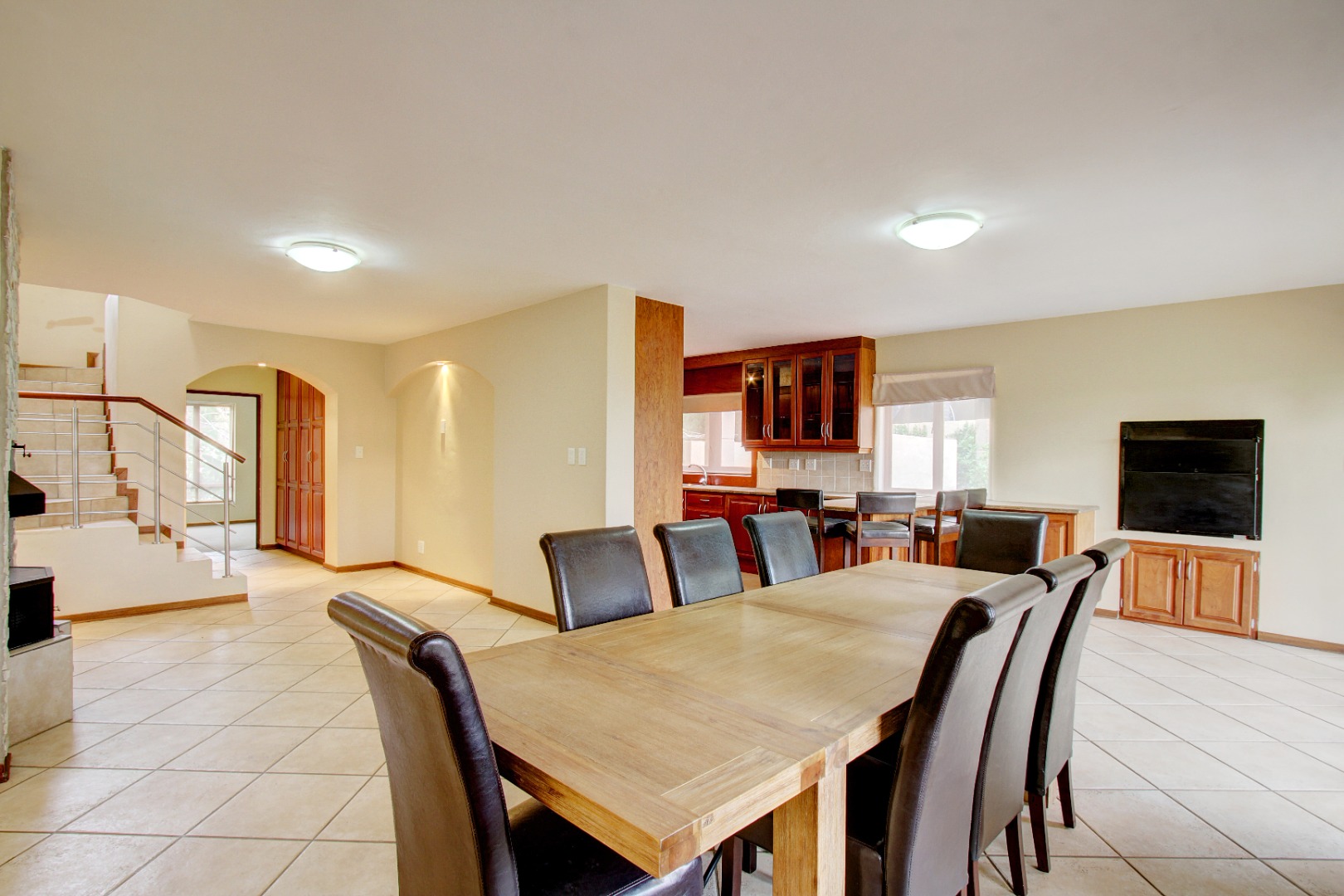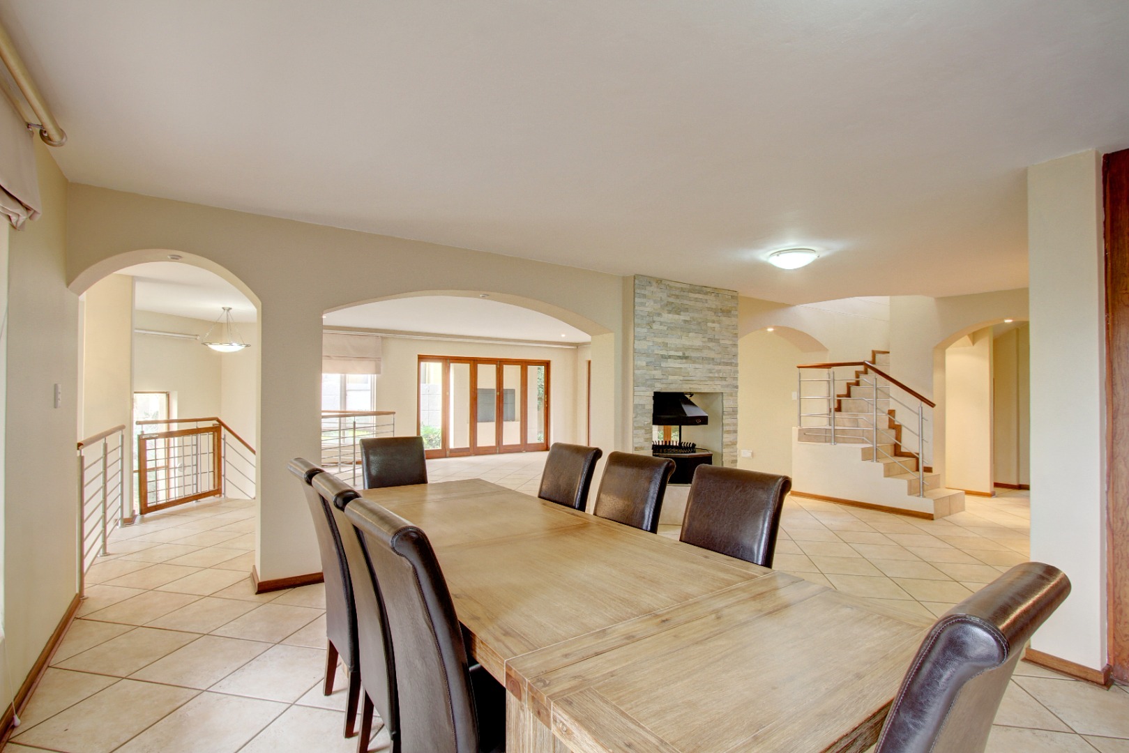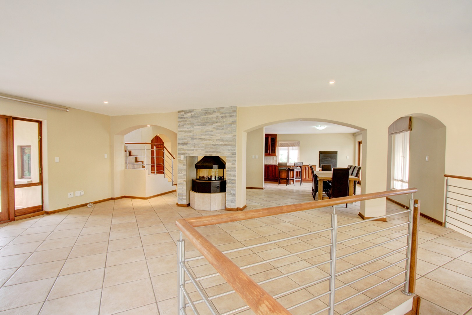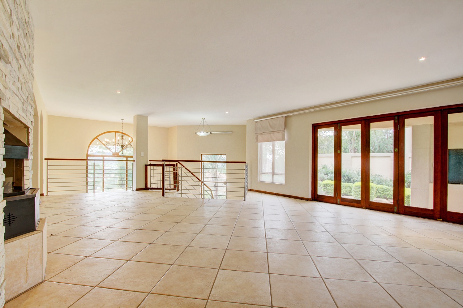 Discover this exquisite furnished 4-bedroom, 4-bathroom residence nestled within the prestigious Woodhill Golf Estate in Pretoria. This multi-story home boasts a grand arched entryway, high ceilings, and abundant natural light. The spacious layout includes two comfortable lounges, a dedicated dining room, and a well-appointed kitchen with a pantry. Modern finishes feature durable tiled flooring, neutral walls, and a contemporary staircase with sleek metal and wood railings, creating an inviting and stylish atmosphere.