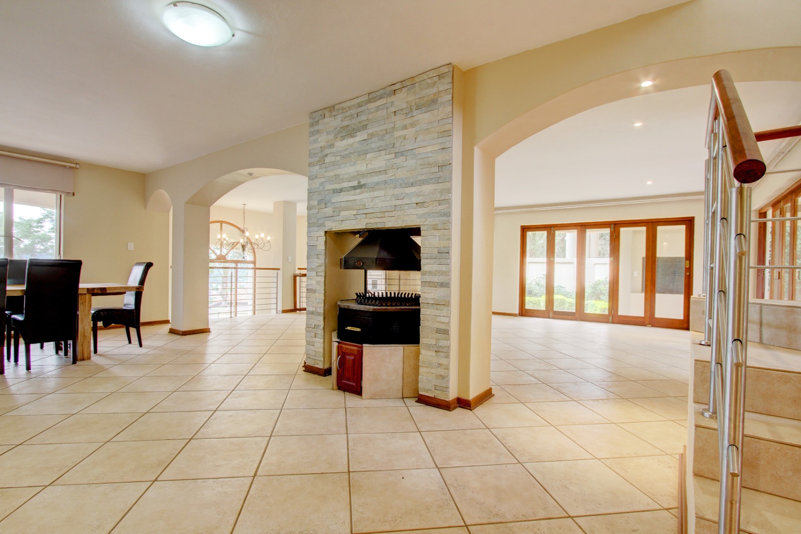 Designed for sophisticated living, the property offers an open-plan design with seamless indoor-outdoor flow to a private swimming pool and landscaped garden, perfect for relaxation and entertaining. A built-in braai and balcony outdoor enjoyment. This pet-friendly home includes a dedicated study, domestic rooms, and a family TV room.