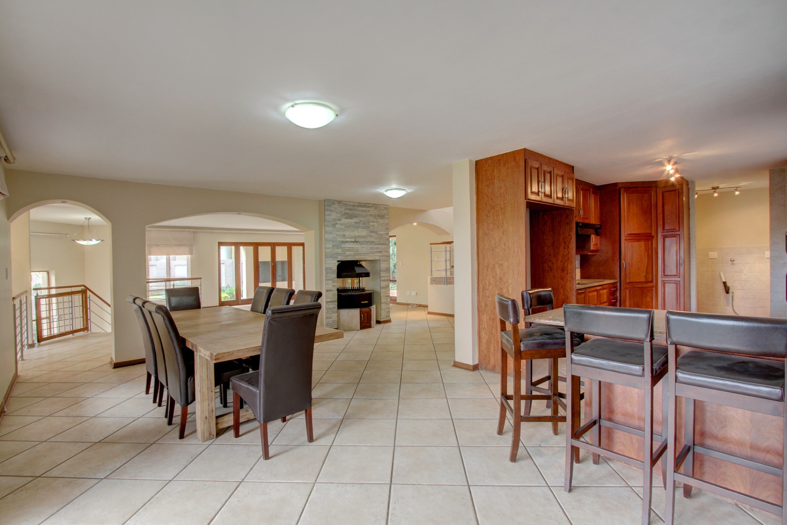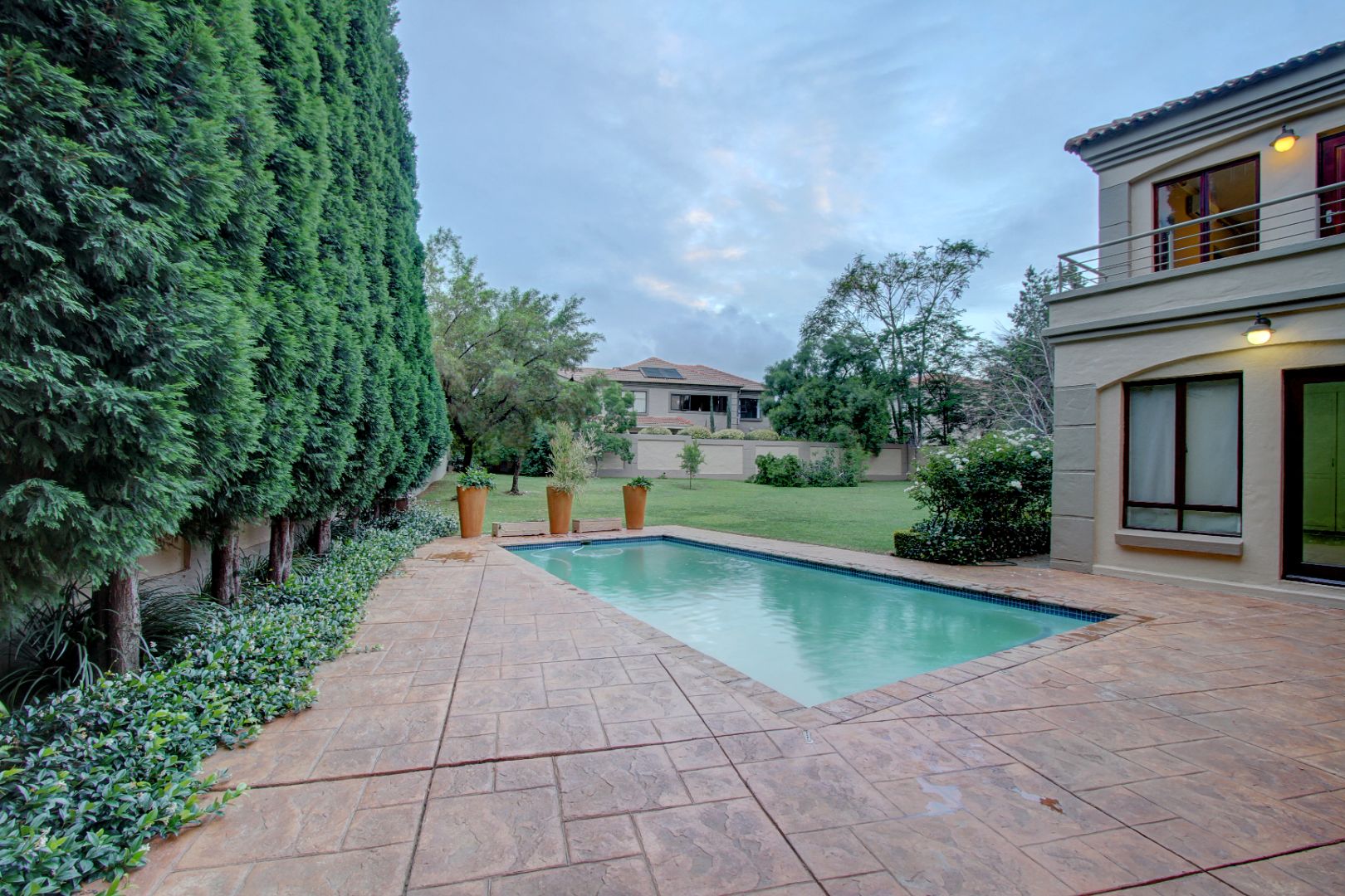 Designed for sophisticated living, the property offers an open-plan design with seamless indoor-outdoor flow to a private swimming pool and landscaped garden, perfect for relaxation and entertaining. A built-in braai and balcony outdoor enjoyment. This pet-friendly home includes a dedicated study, domestic rooms, and a family TV room.