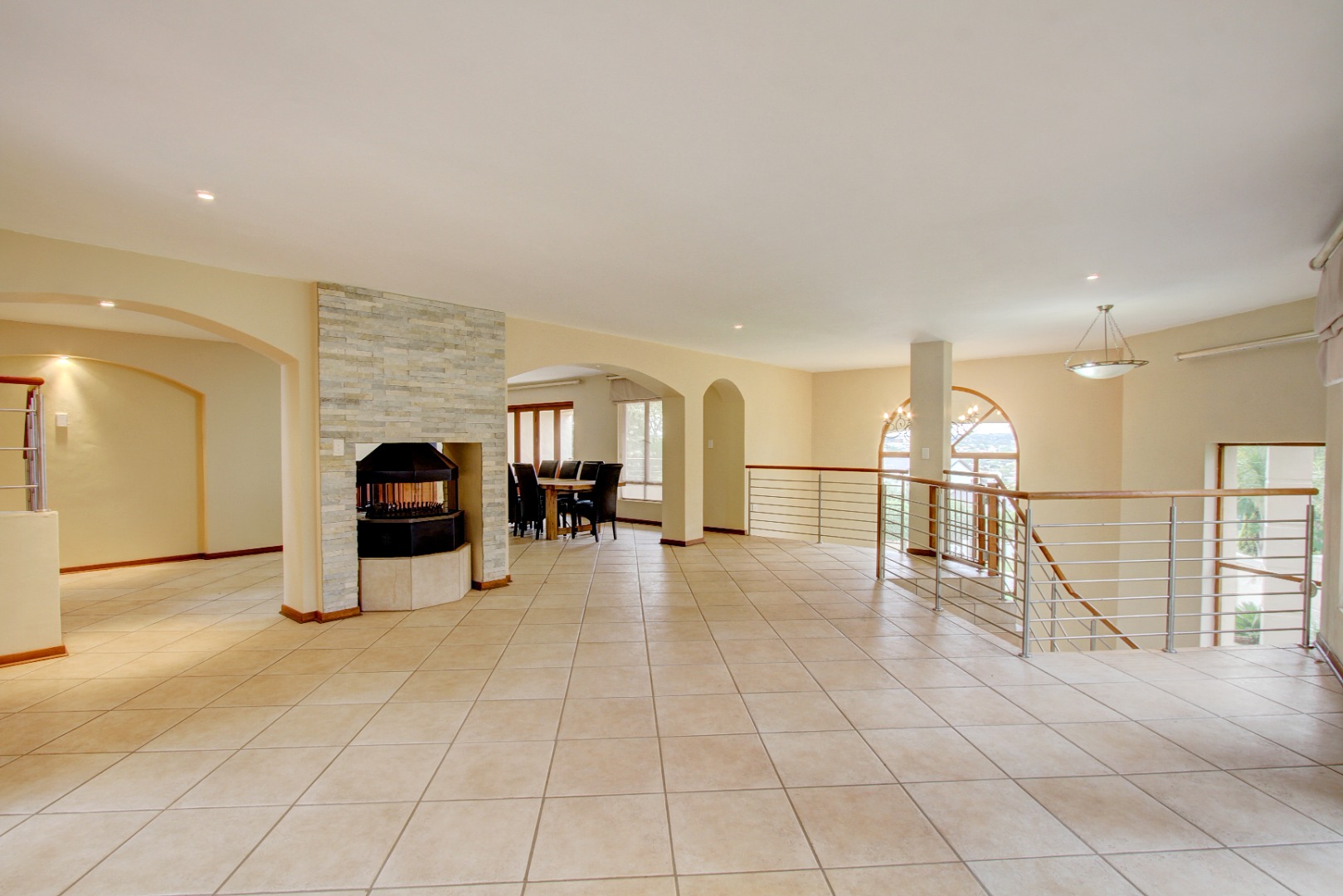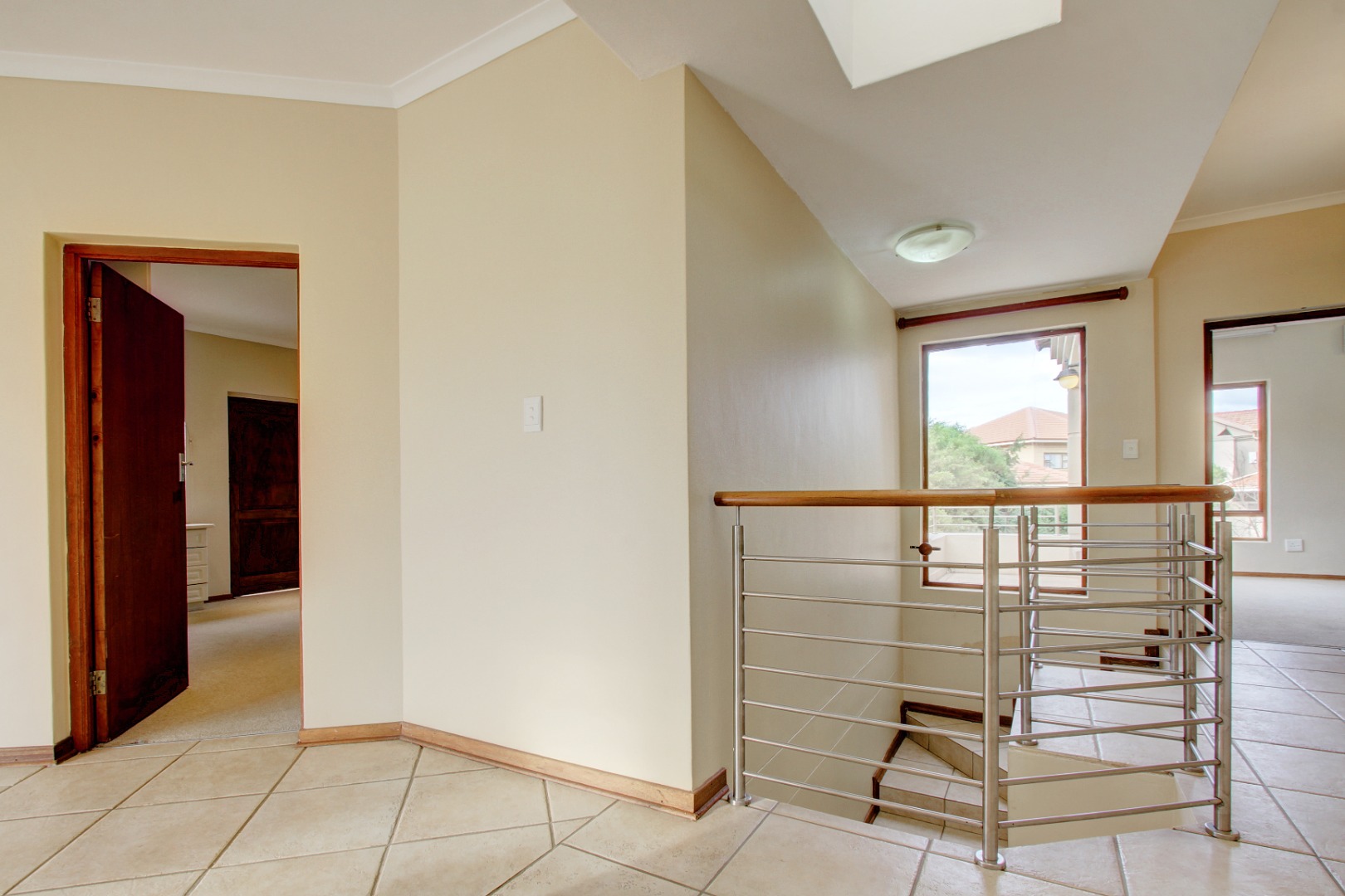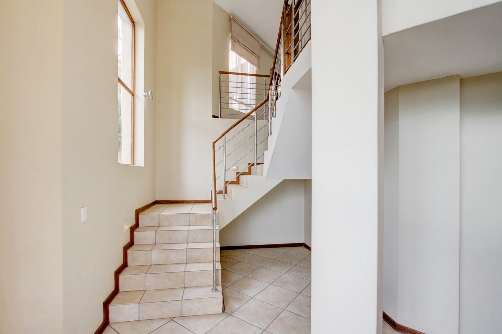 Discover this exquisite furnished 4-bedroom, 4-bathroom residence nestled within the prestigious Woodhill Golf Estate in Pretoria. This multi-story home boasts a grand arched entryway, high ceilings, and abundant natural light. The spacious layout includes two comfortable lounges, a dedicated dining room, and a well-appointed kitchen with a pantry. Modern finishes feature durable tiled flooring, neutral walls, and a contemporary staircase with sleek metal and wood railings, creating an inviting and stylish atmosphere.