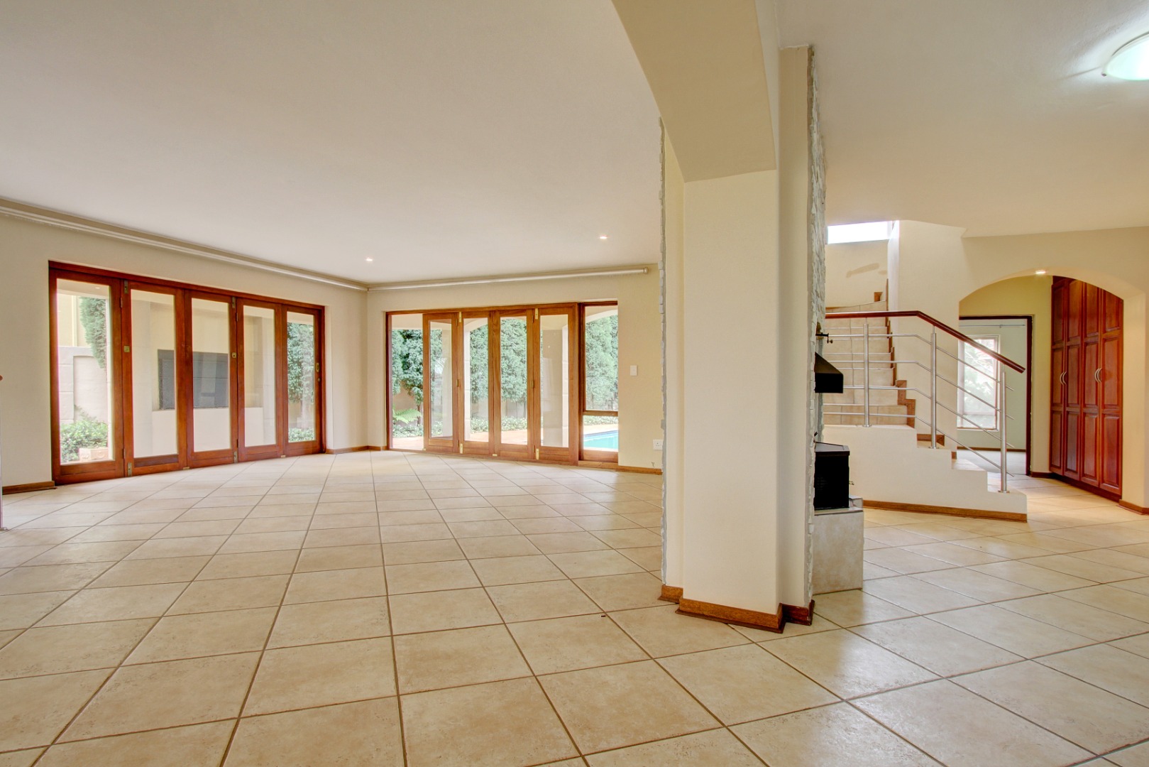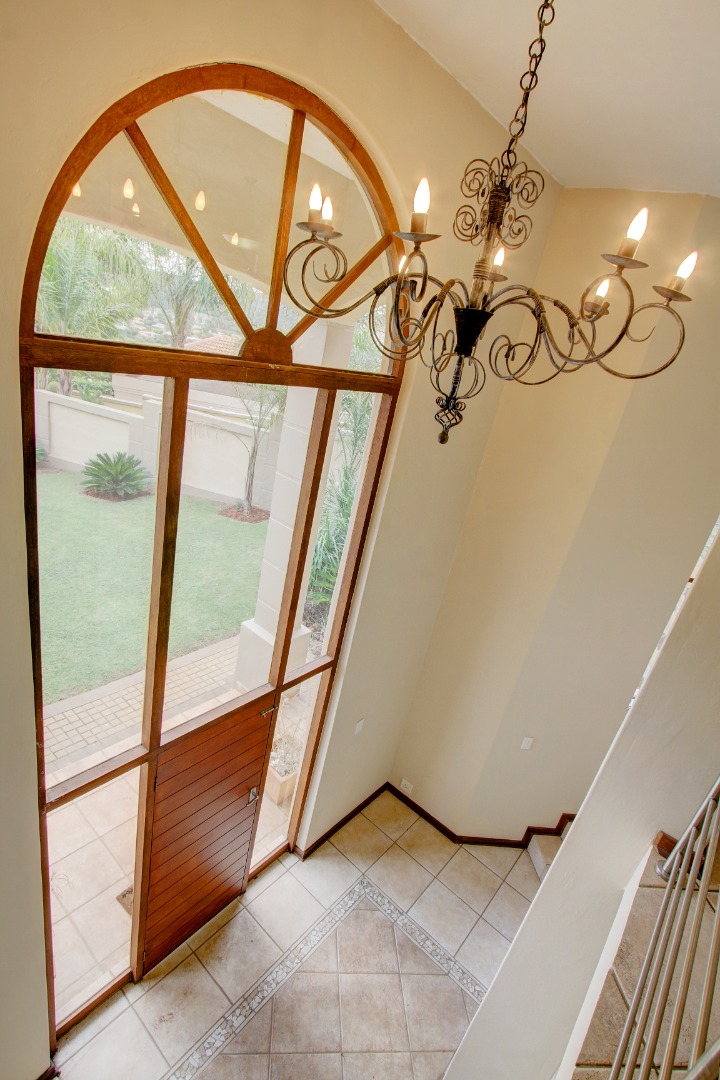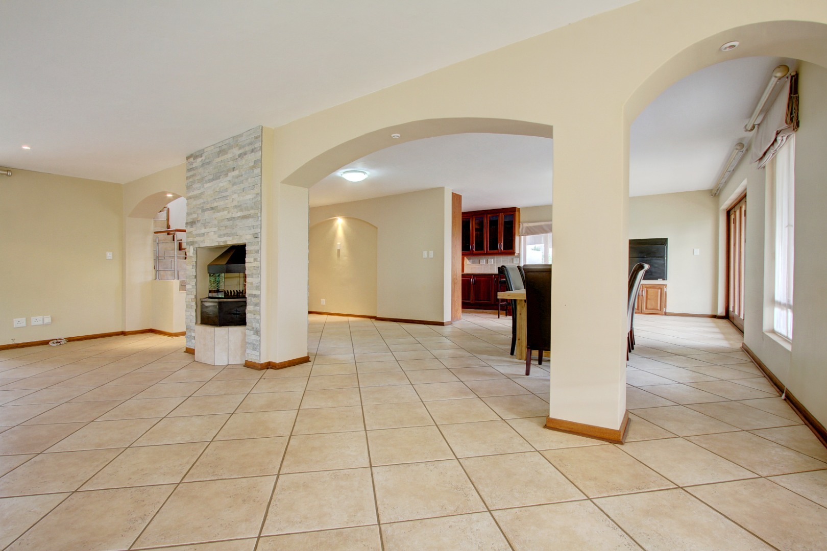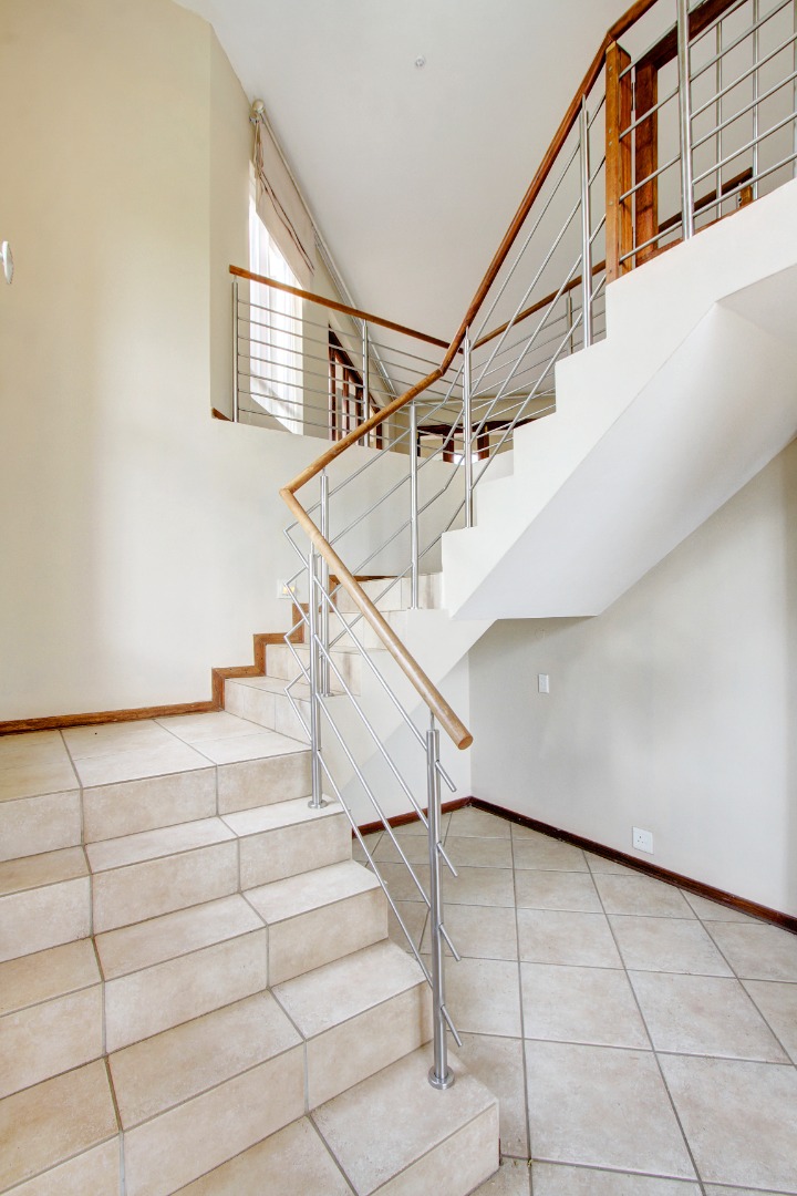 Discover this exquisite furnished 4-bedroom, 4-bathroom residence nestled within the prestigious Woodhill Golf Estate in Pretoria. This multi-story home boasts a grand arched entryway, high ceilings, and abundant natural light. The spacious layout includes two comfortable lounges, a dedicated dining room, and a well-appointed kitchen with a pantry. Modern finishes feature durable tiled flooring, neutral walls, and a contemporary staircase with sleek metal and wood railings, creating an inviting and stylish atmosphere.