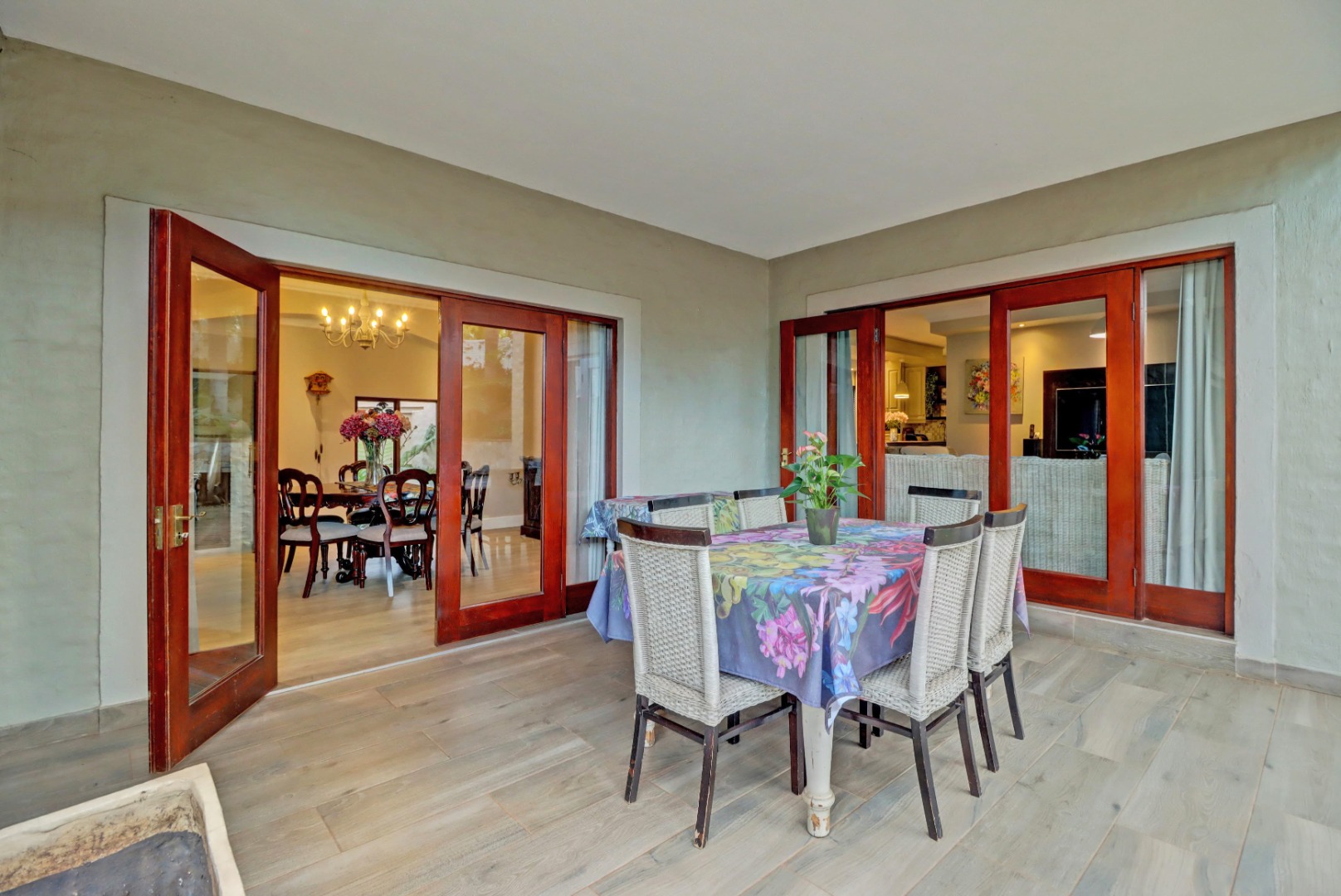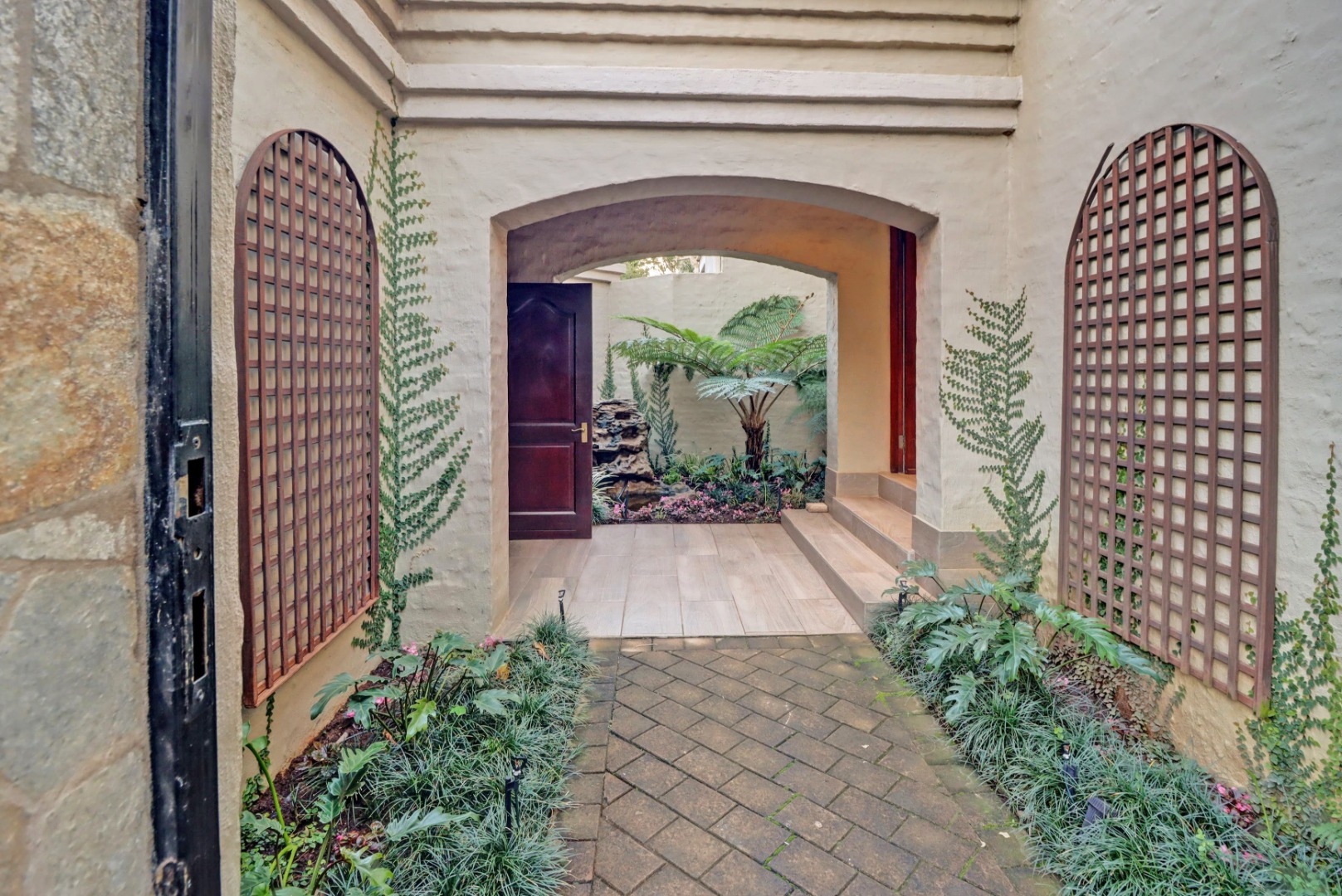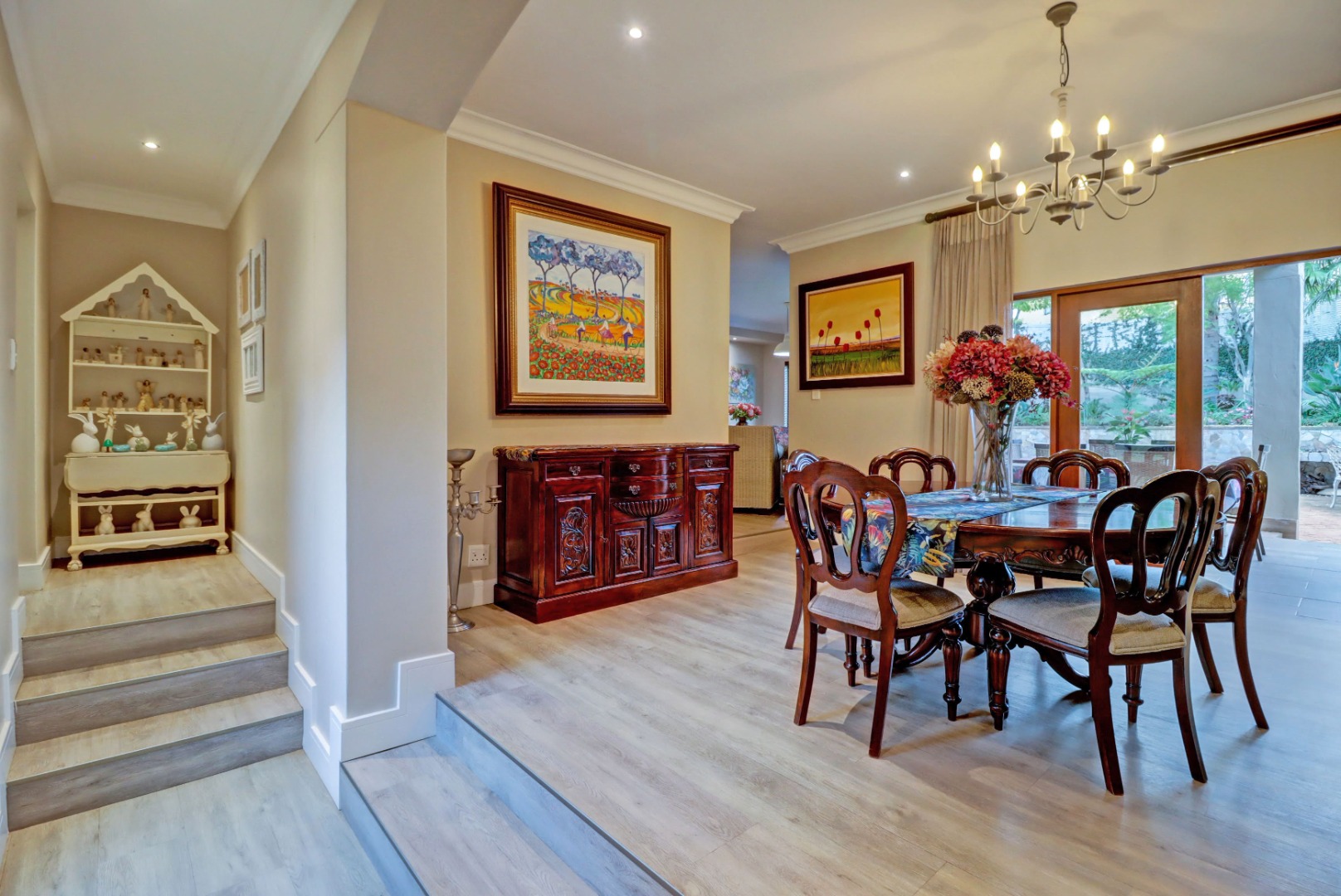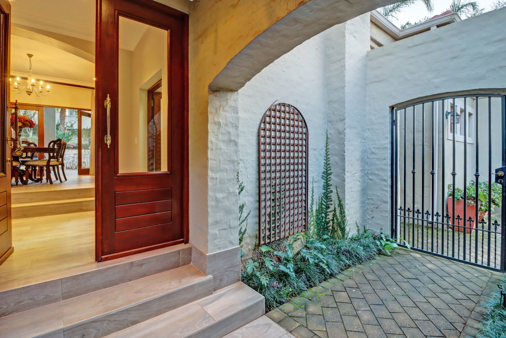 Accommodation comprises four well-proportioned bedrooms and three bathrooms, with two of these being en-suite, providing privacy and convenience. Additionally, the property includes staff quarters, adding to its practical appeal. Thoughtful amenities such as air conditioning, a cosy fireplace, and a battery inverter ensure comfort and uninterrupted living, while fibre connectivity supports modern digital demands. Pets are welcome, making this a truly inclusive family residence.