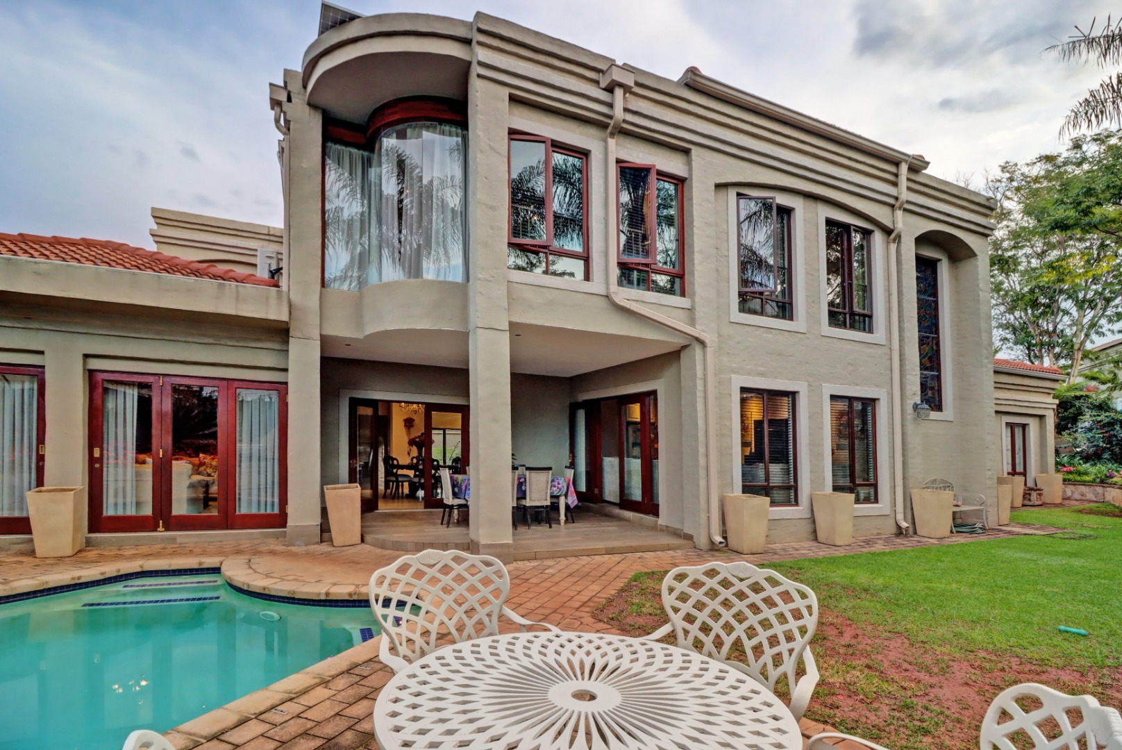 This spacious 4-bedroom, 3-bathroom home in Woodhill Golf and Security Estate offers luxurious living with multiple reception rooms, a study, and a well-appointed kitchen. Enjoy outdoor entertaining with a private patio, pool, and garden. Features include 3 garages, air conditioning, a fireplace, battery inverter, fibre, and staff quarters, all within a secure, pet-friendly environment.