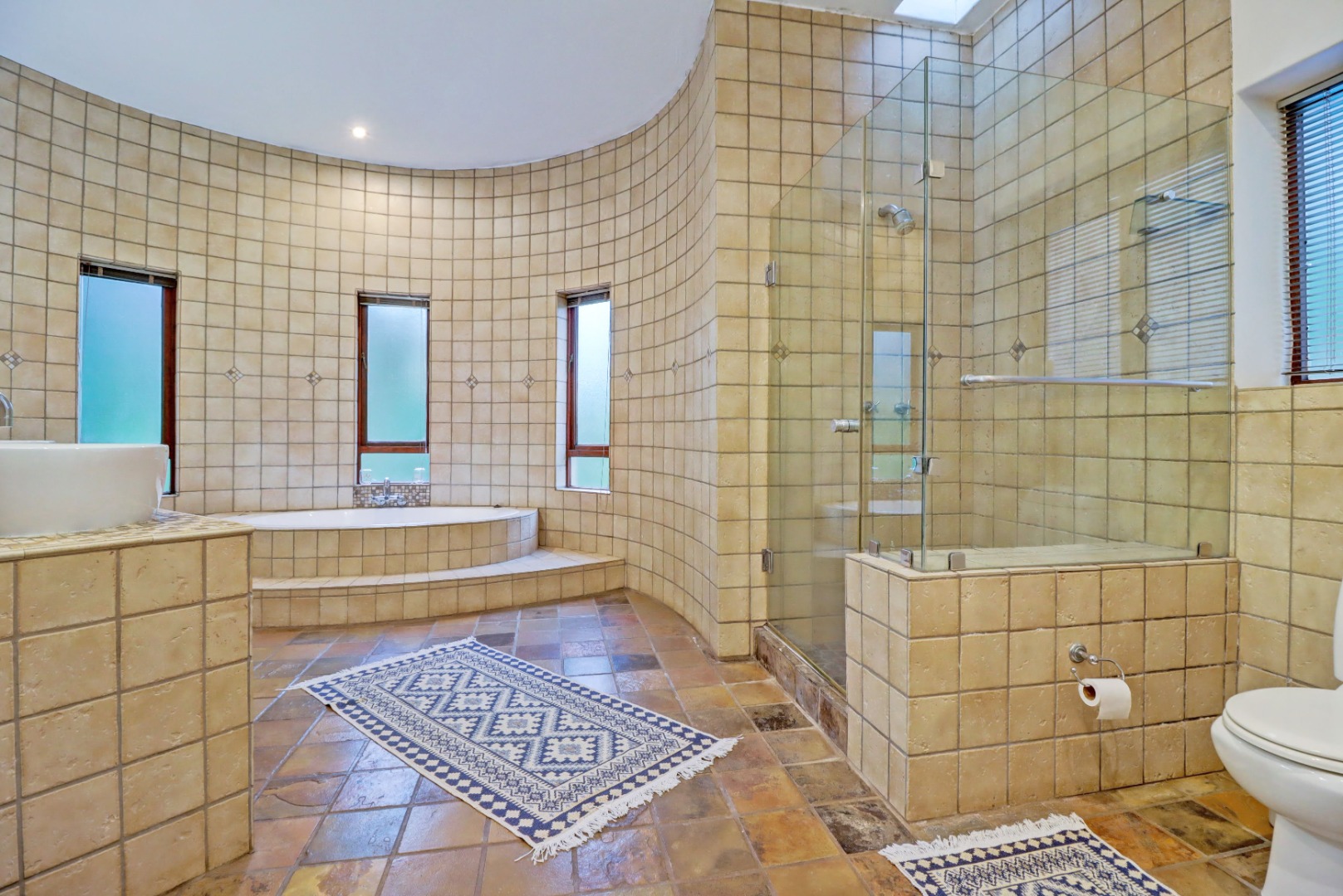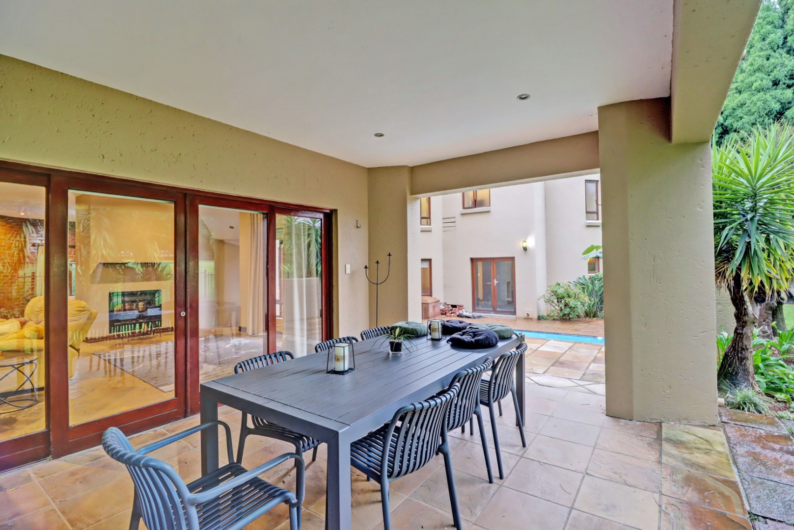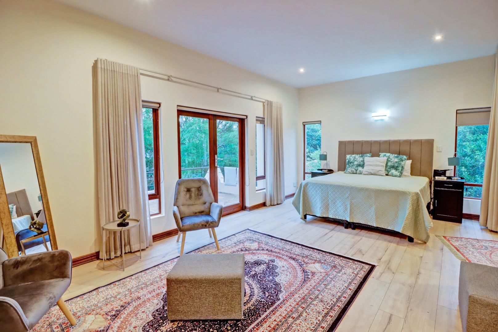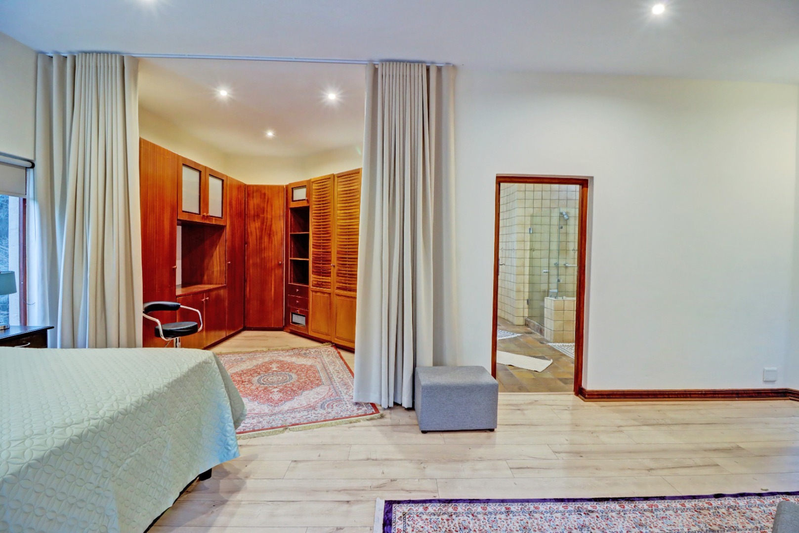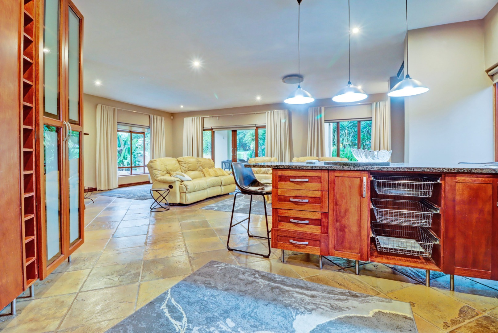 Step into this magnificent 4-bedroom, 3-bathroom residence, available for rent in the esteemed Woodhill Golf Estate, Pretoria. The property welcomes you with a grand, arch-covered entrance and a spacious foyer featuring high ceilings and an elegant spiral staircase with modern metal railings, leading to a curved upper-level balcony. This fully furnished home boasts three generous lounges, a dedicated dining room, and a well-appointed kitchen, providing ample space for comfortable living and entertaining. The interior showcases a blend of modern design and rustic charm with durable tiled flooring and contemporary fixtures.