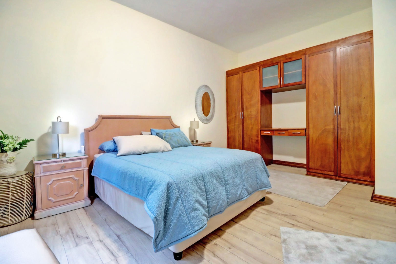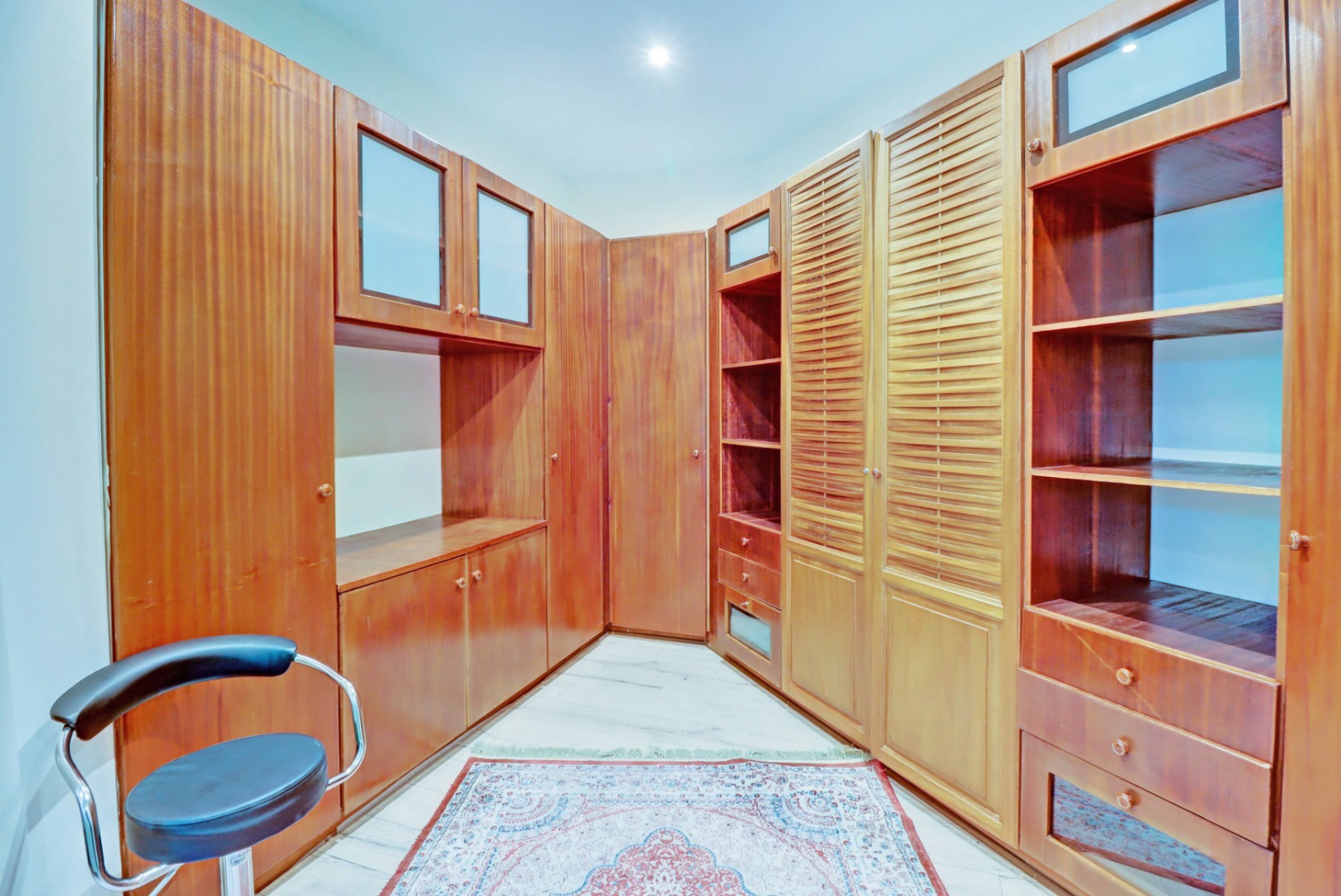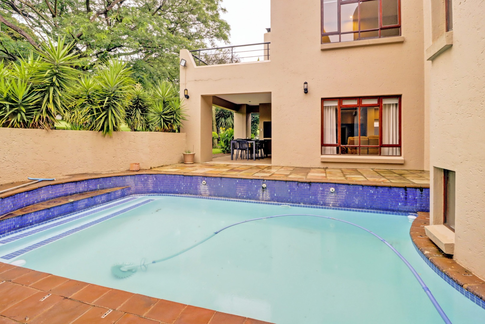 Designed for a discerning lifestyle, this home offers a seamless indoor-outdoor flow. Enjoy the convenience of multiple balconies and a private patio, perfect for relaxation or al fresco dining. The well-maintained garden and inviting pool provide a serene outdoor escape, while a dedicated relaxation space features a large built-in jacuzzi tub with natural stone surrounds. With pets allowed, this residence is ideal for families seeking a luxurious and comfortable living environment within a secure estate.