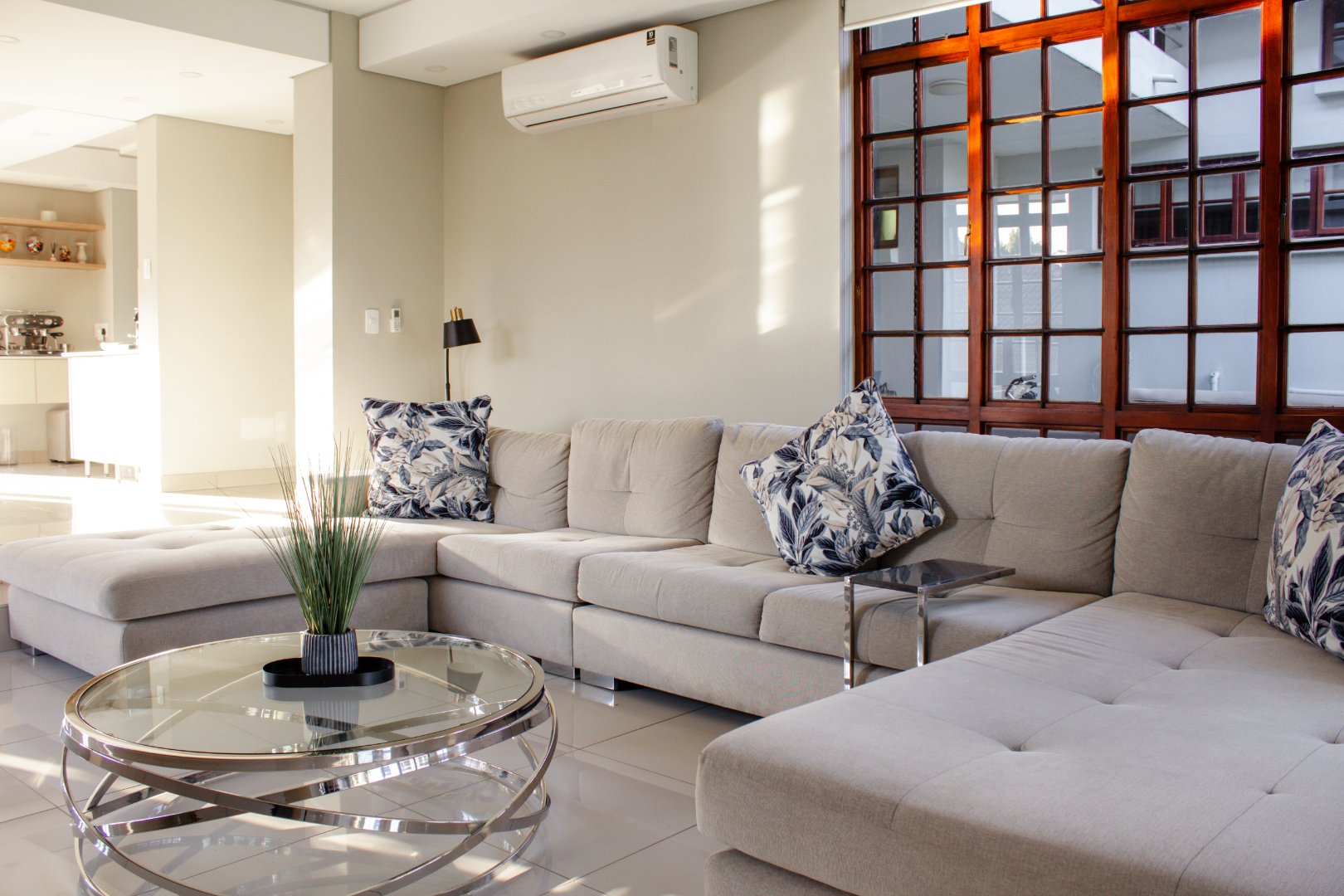 * Modern Open-Plan Design with High Ceilings