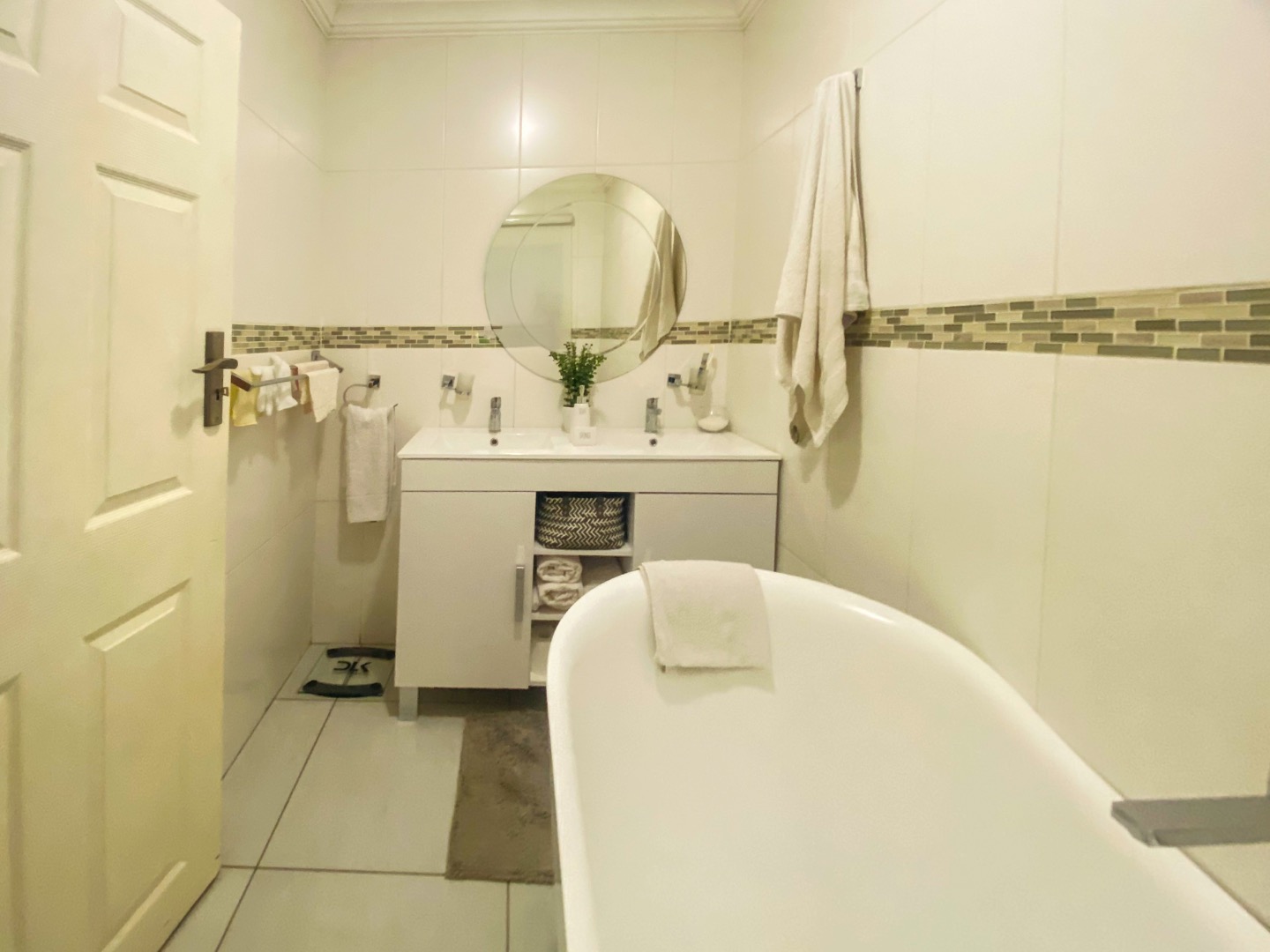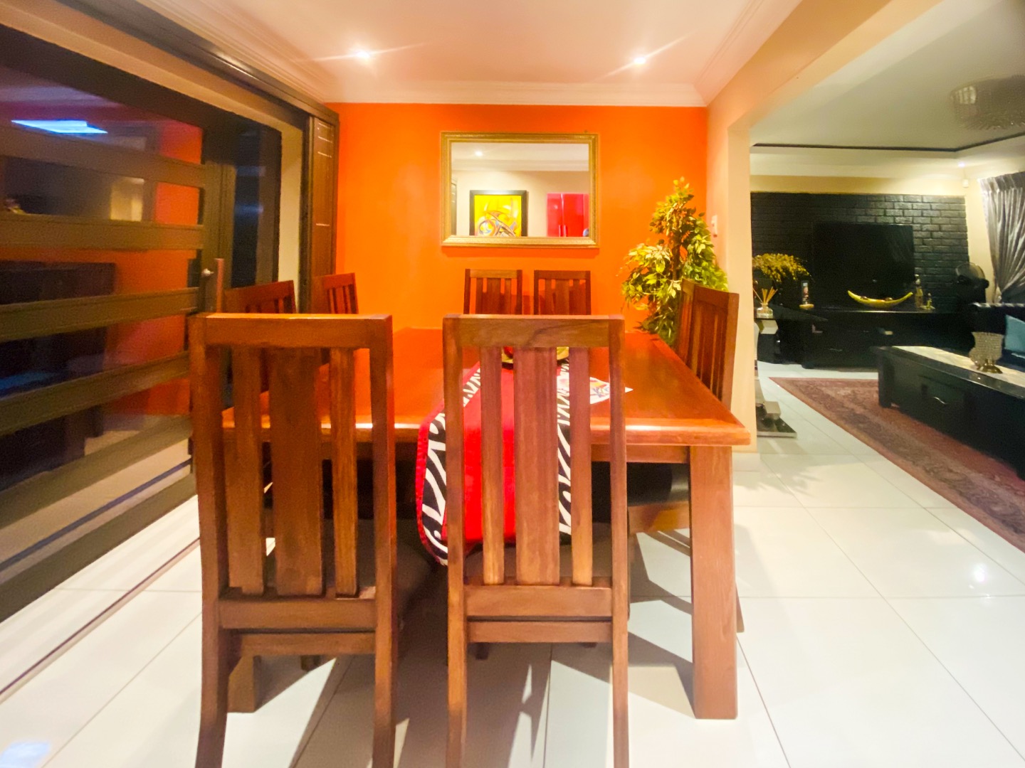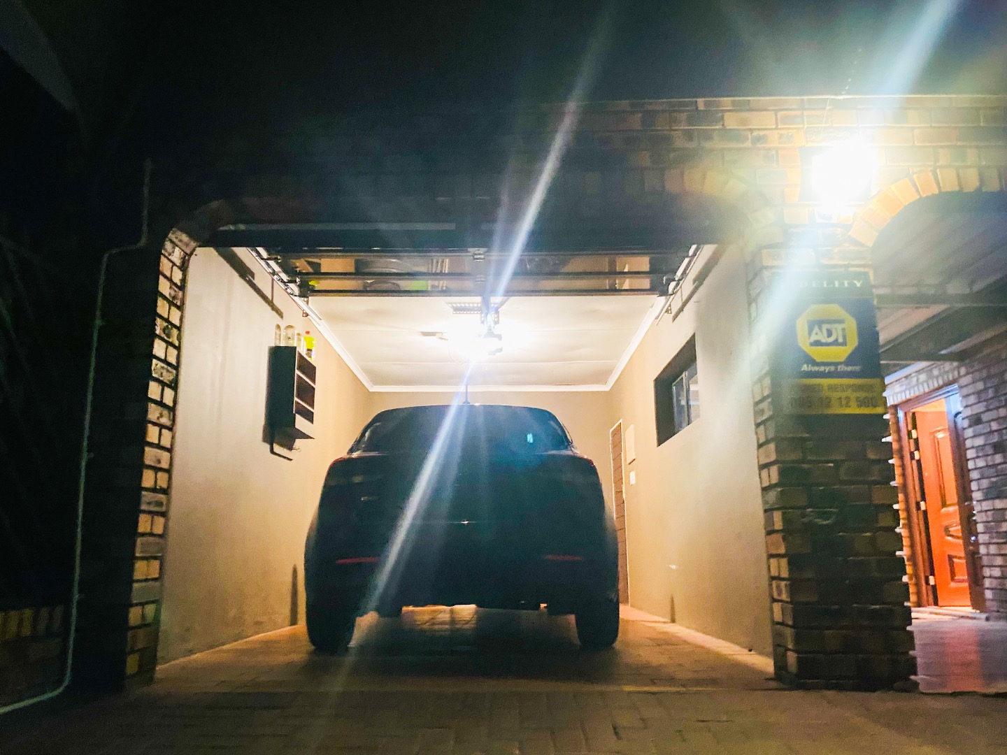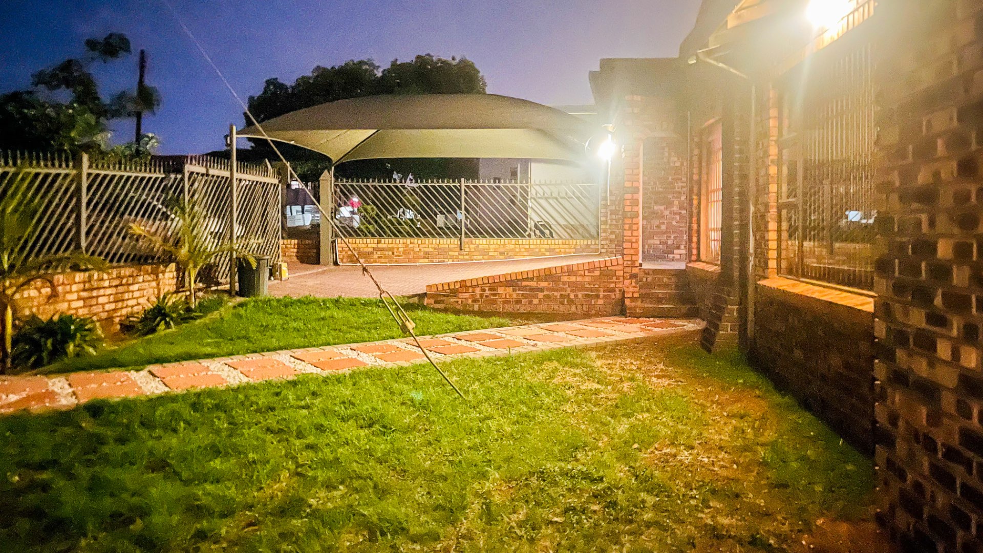Security is thoughtfully integrated, featuring robust security gates, burglar bars, and a perimeter defined by a sturdy metal fence with a brick base, complemented by an ADT sign for enhanced peace of mind. Excellent exterior lighting illuminates the property, ensuring safety and visibility during evening hours. The durable brick construction promises longevity and low maintenance, allowing you to fully immerse yourself in the luxurious lifestyle this home affords.