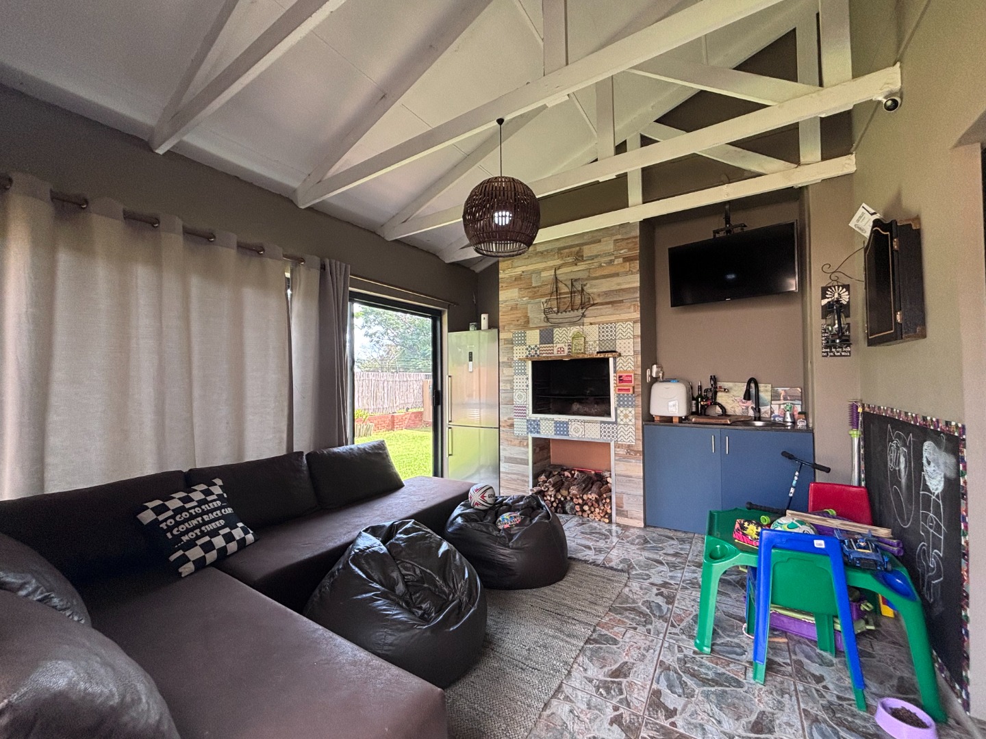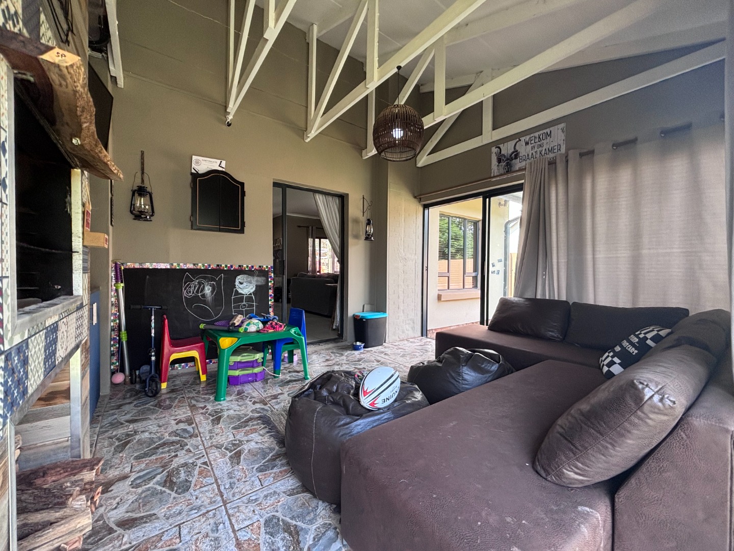 Discover this beautiful 3-bedroom double-story family home situated in Symphony, Hartbeespoort. The open-plan lounge and dining room provide a spacious area for family gatherings. The dining room opens up to a covered entertainment area featuring a built-in braai, which leads to a backyard complete with a firepit and a charming farm-style swimming pool.