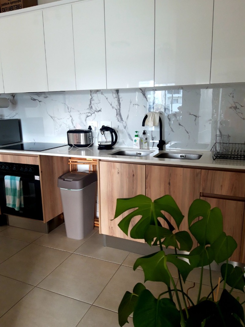 Kitchen with washing machine and fridge as standard and will stay in the property.