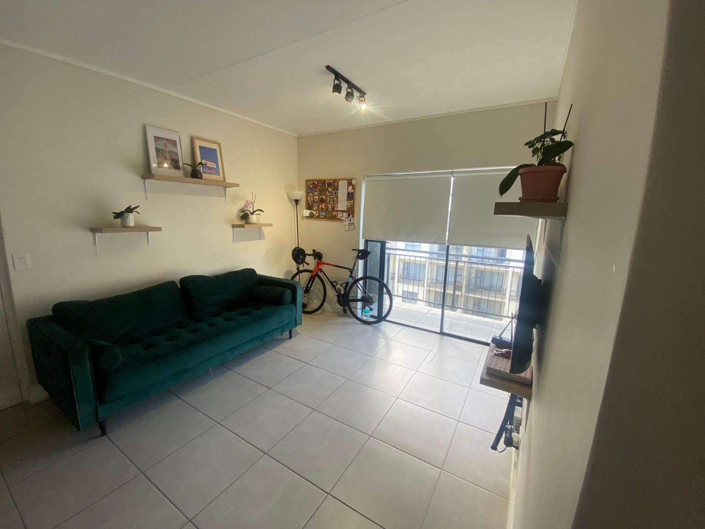 Open plan living area leading to a balcony and view!